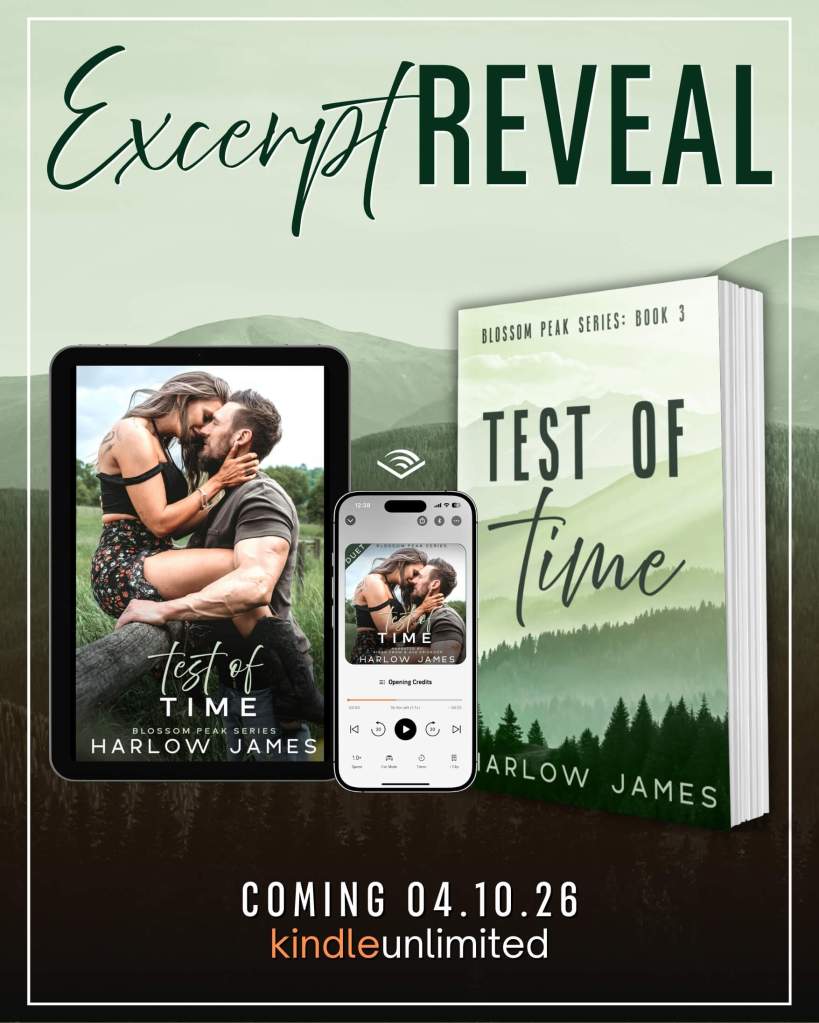 ✨EXCERPT: TEST OF TIME by @harlowjamesauthor releasing April 10th! This will be a simultaneous release in Audio with the amazing narrators Aiden Snow and Ava Erickson in DUET!
