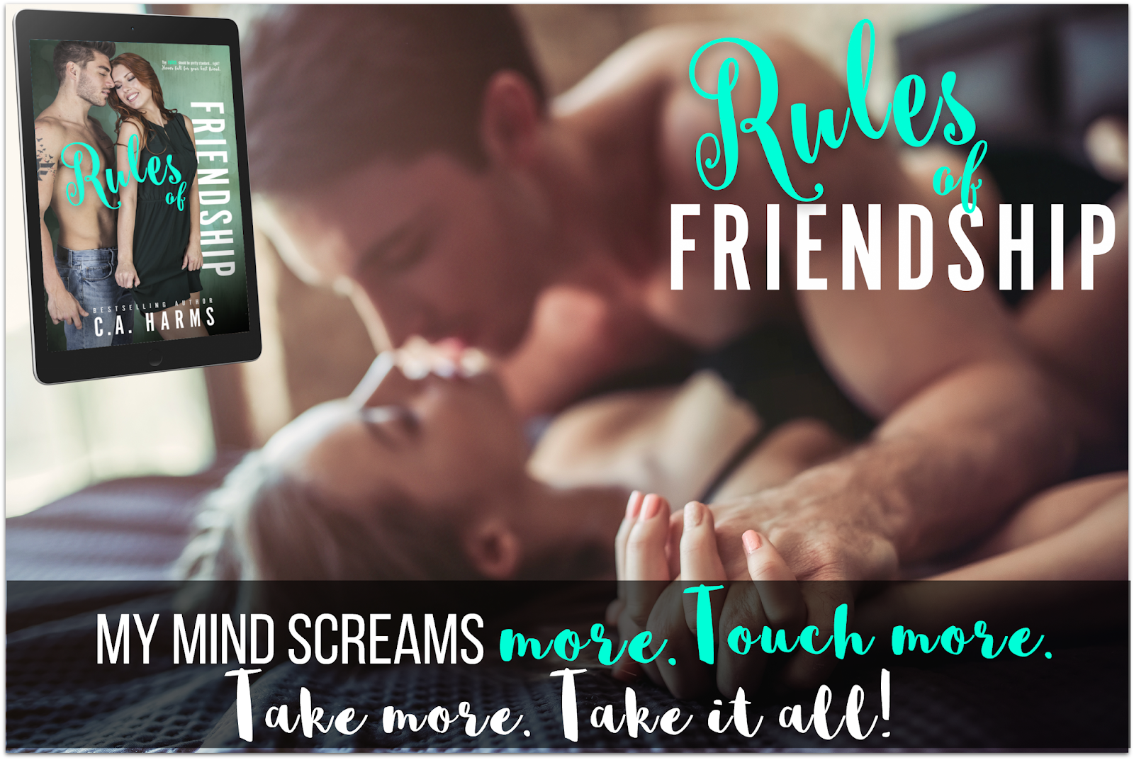 C.A. Harms is like any other addicted reader. She enjoys happy endings and HEA love stories. She hasn’t always been a lover of Romance and had once been addicted to a good Mystery. Just recently she has taken on a new liking and now is a full blown Romance novel addict.