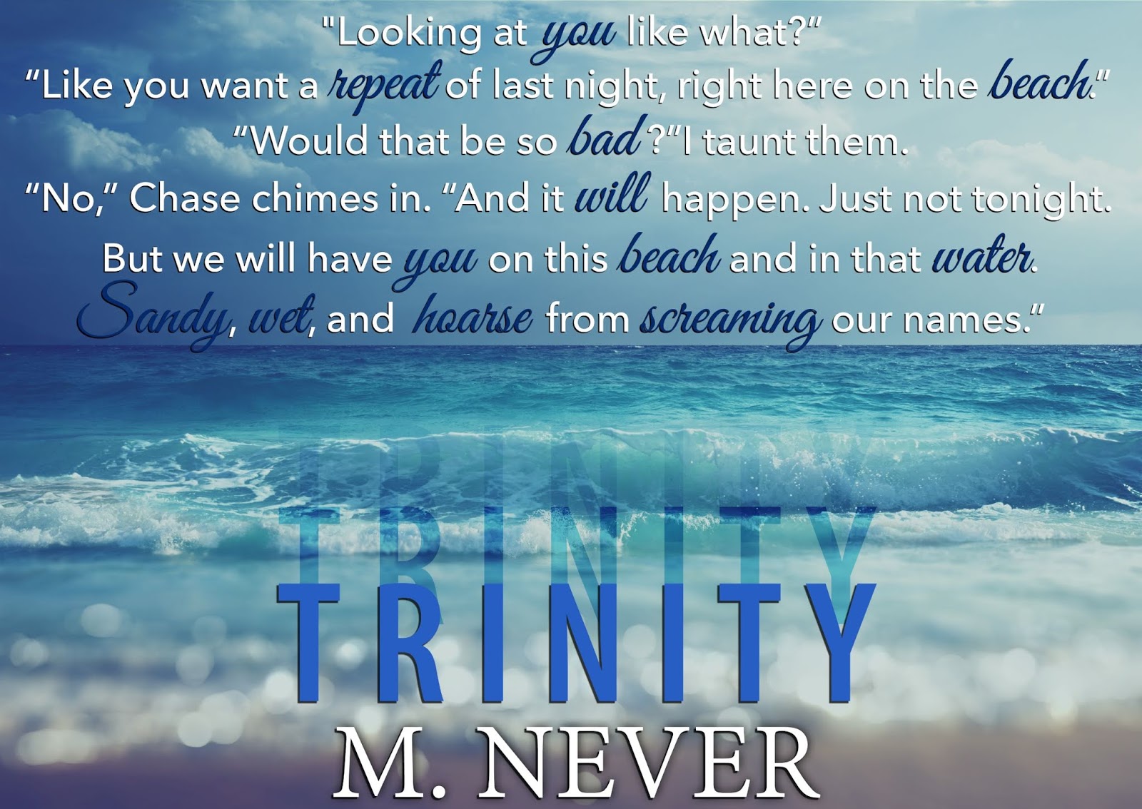 M. Never resides in New York City. When she’s not researching ways to tie up her characters in compromising positions, you can usually find her at the gym kicking the crap out of a punching bag, or eating at some new trendy restaurant.She has a dependence on sushi and a fetish for boots. Fall is her favorite season.
