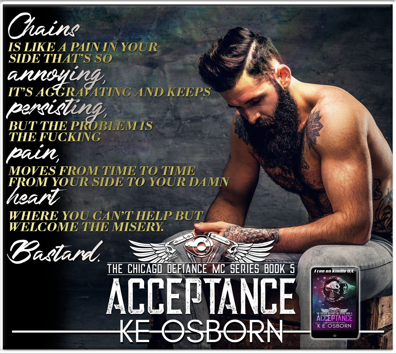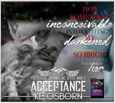 Chains may have escaped his brutal childhood, but he still lives with the regrets even though he was taken in by Bex and her family and they became his family. His feelings for Bex are far from sisterly but he doesn’t want to take the chance that crossing that line could destroy his relationship with the people who rescued him. He became a member of the Defiance MC and his loyalty to the MC and his brothers is unquestionable.