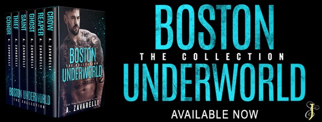 The complete Boston Underworld series box set includes six full-length novels- CROW, REAPER, GHOST, SAINT, THIEF, CONOR.CROW: