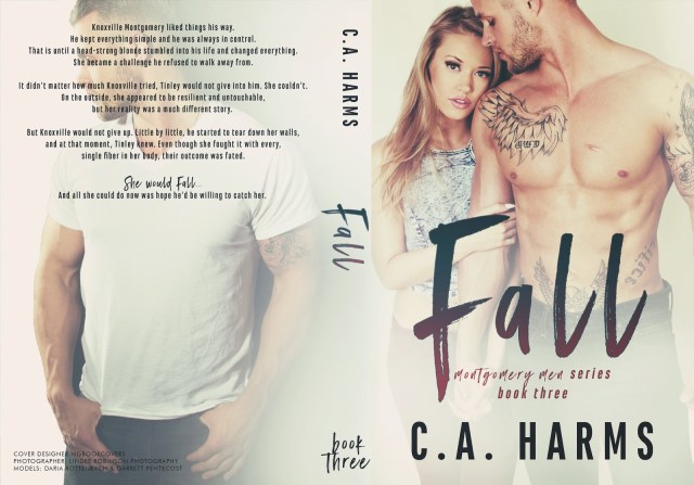 Knoxville Montgomery liked things his way. He kept everything simple and he was always in control. That is until a head-strong blonde stumbled into his life and changed everything. She became a challenge he refused to give up on.It didn’t matter how much Knoxville tried, Tinley would not give into him. She couldn’t. On the outside, she appeared to be resilient and untouchable, but her reality was a much different story.