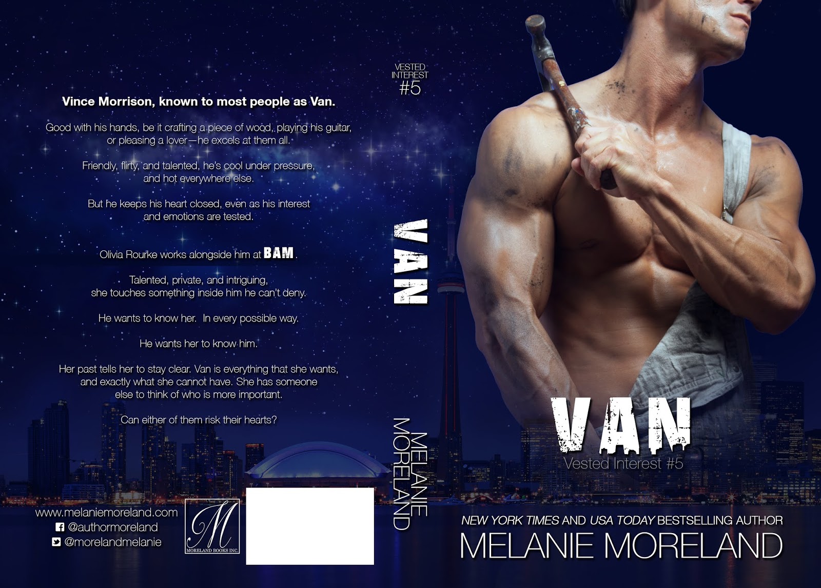 New York Times/USA Today bestselling author Melanie Moreland, lives a happy and content life in a quiet area of Ontario with her beloved husband of twenty-seven-plus years and their rescue cat, Amber. Nothing means more to her than her friends and family, and she cherishes every moment spent with them.