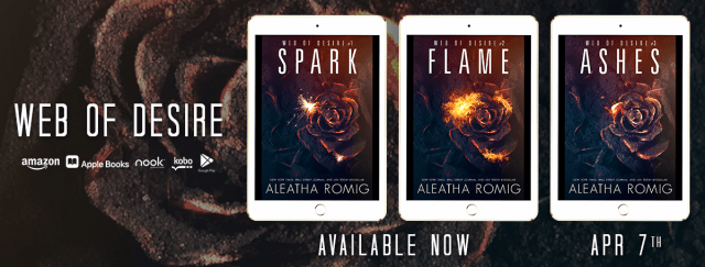 From New York Times bestselling author Aleatha Romig comes a brand-new dark romance, Spark, set in the same dangerous world as Secrets and Twisted. You do not need to read the Web of Sin or Tangled Web trilogy to get caught up in this new and intriguing saga, Web of Desire.