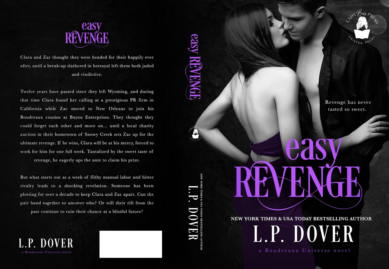 Twelve years have passed since they left Wyoming, and during that time Clara found her calling at a prestigious PR firm in California while Zac moved to New Orleans to join his Boudreaux cousins at Bayou Enterprises. They thought they could forget each other and move on … until a local charity auction in their hometown of Snowy Creek sets Zac up for the ultimate revenge. If he wins, Clara will be at his mercy, forced to work for him for one full week. Tantalized by the sweet taste of revenge, he eagerly ups the ante to claim his prize.