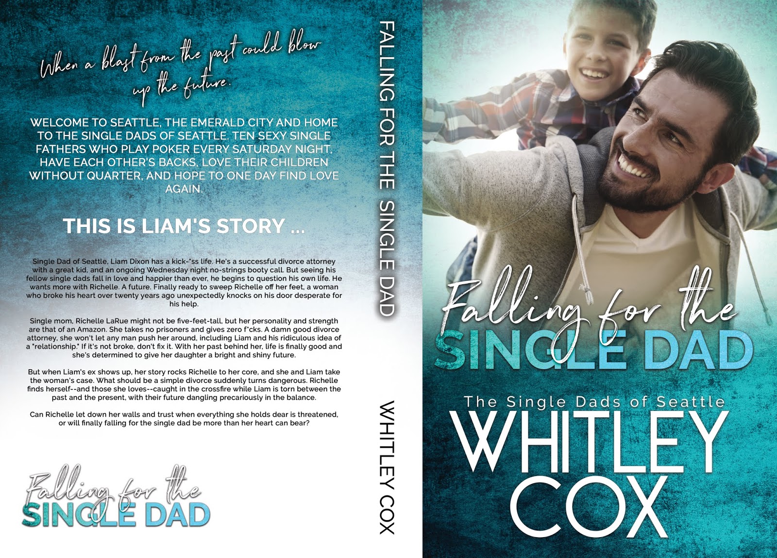 Single Dad of Seattle, Liam Dixon has a kick-*ss life. He’s a successful divorce attorney with a great kid, and an ongoing Wednesday night no-strings booty call. But seeing his fellow single dads fall in love and happier than ever, he begins to question his own life. He wants more with Richelle. A future. Finally ready to sweep Richelle off her feet, a woman who broke his heart over twenty years ago unexpectedly knocks on his door desperate for his help.