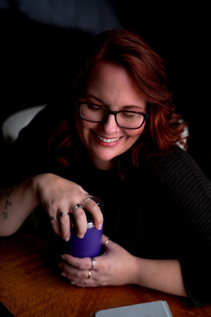 The inked and pierced grandma spends her time tucked away in her office, coated in cat hair, alternating between tearing her hair out trying to find the perfect words and being one step ahead of her three scheming fur babies she is positive are plotting her demise with every swirl around her ankles at the top of her office stairs.