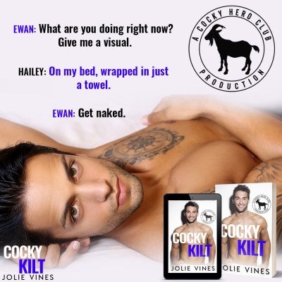 Cocky Kilt is a cute and steamy romp between a New York lass and a determined Scot. Expect sexting after dark and a love-conquers-all happy ending.