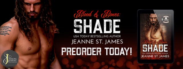 Note: Blood & Bones: Shade is the sixth book in the Blood Fury MC series and is an age-gap romance (younger man/older woman). As always, this book has no cheating, no cliffhanger and has an HEA. It’s recommended to read this series in order.