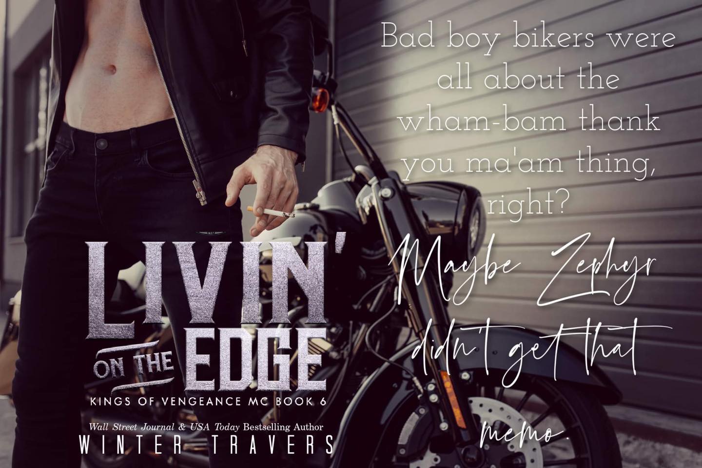 ‘Livin’ on the Edge was another great addition to the Kings of Vengeance MC series. Zephyr and Lynn had me from the start and the push and pull along with the spark between these two had you completely captivated. Their story had emotion, passion, heat and let’s not forget the hilarious moments with book club.’ ~ Wiley Kate