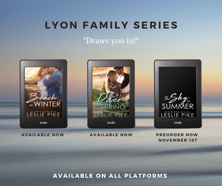 USA TODAY bestselling author, Leslie Pike, has loved expressing herself through the written word since she was a child. Her passion for film and screenwriting led her to Texas for eight years, writing for a prime time CBS series. Leslie lives in Southern California with her Pom-Poo, Mr. Big. She’s traveled the world as part of film crews, from Africa to Israel, New York to San Francisco. Now she finds her favorite creative adventures taking place in her home, writing Contemporary Romance.