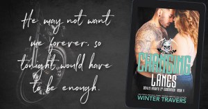 Collapsing against my back, a heavy, happy burden, his breath stilted and warm at my neck, he snakes one muscled arm around my middle, clutching me. After the urgent, feral coupling, it’s a cherishing hold. I cross my arm over his at my waist and tangle our fingers. It’s fragile and sweet, this moment, like flakes of sugar disintegrating on your tongue when you’ve barely had time to taste.