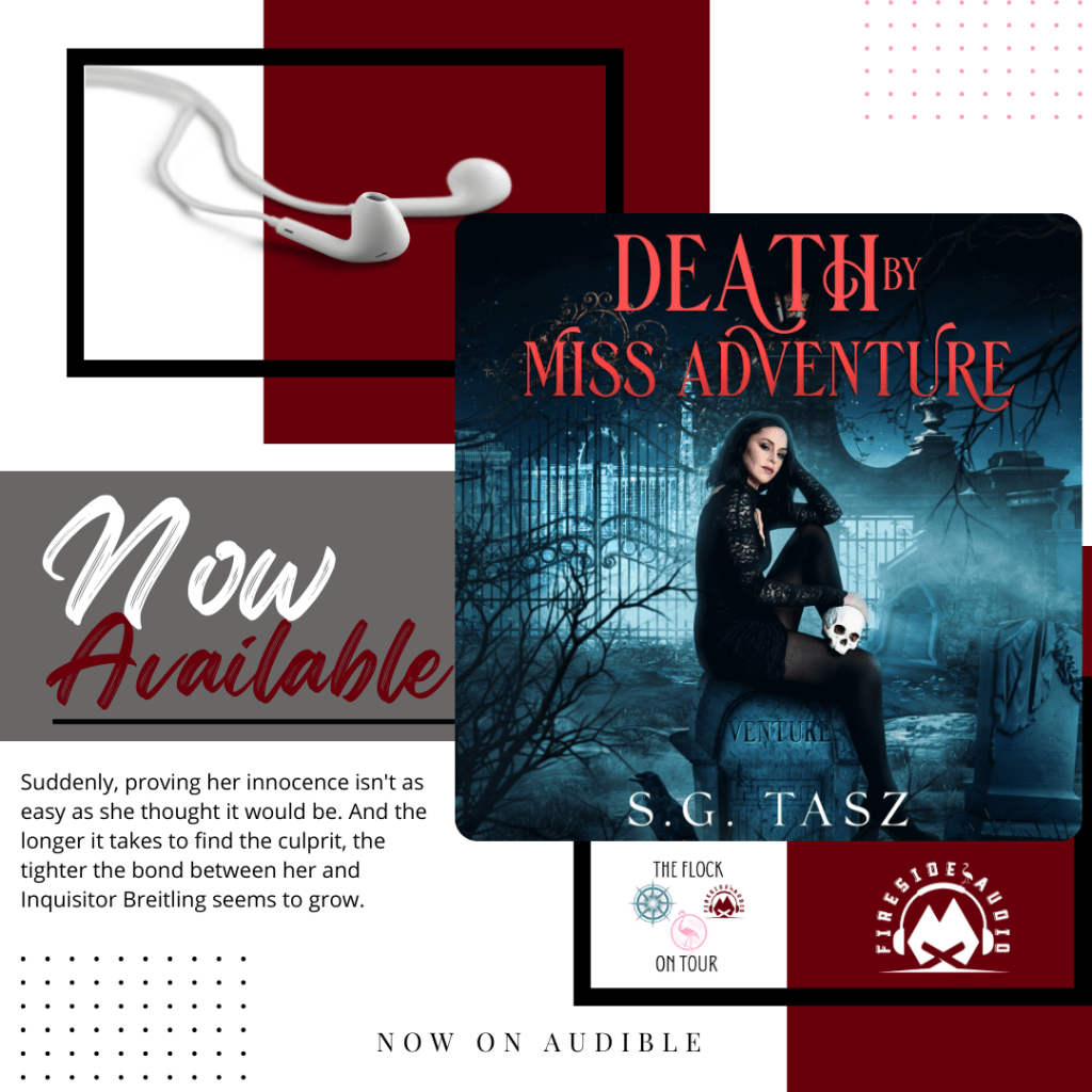 #NowLive #NewRelease #ReleaseBlitz #FiresideAudio #TheFlockonTour #DeathbyMissAdventureAudioTour #SGTasz #PhillipaMiller #UrbanFantasy #GothicFantasy #EnemiestoLovers #FemaleSleuths