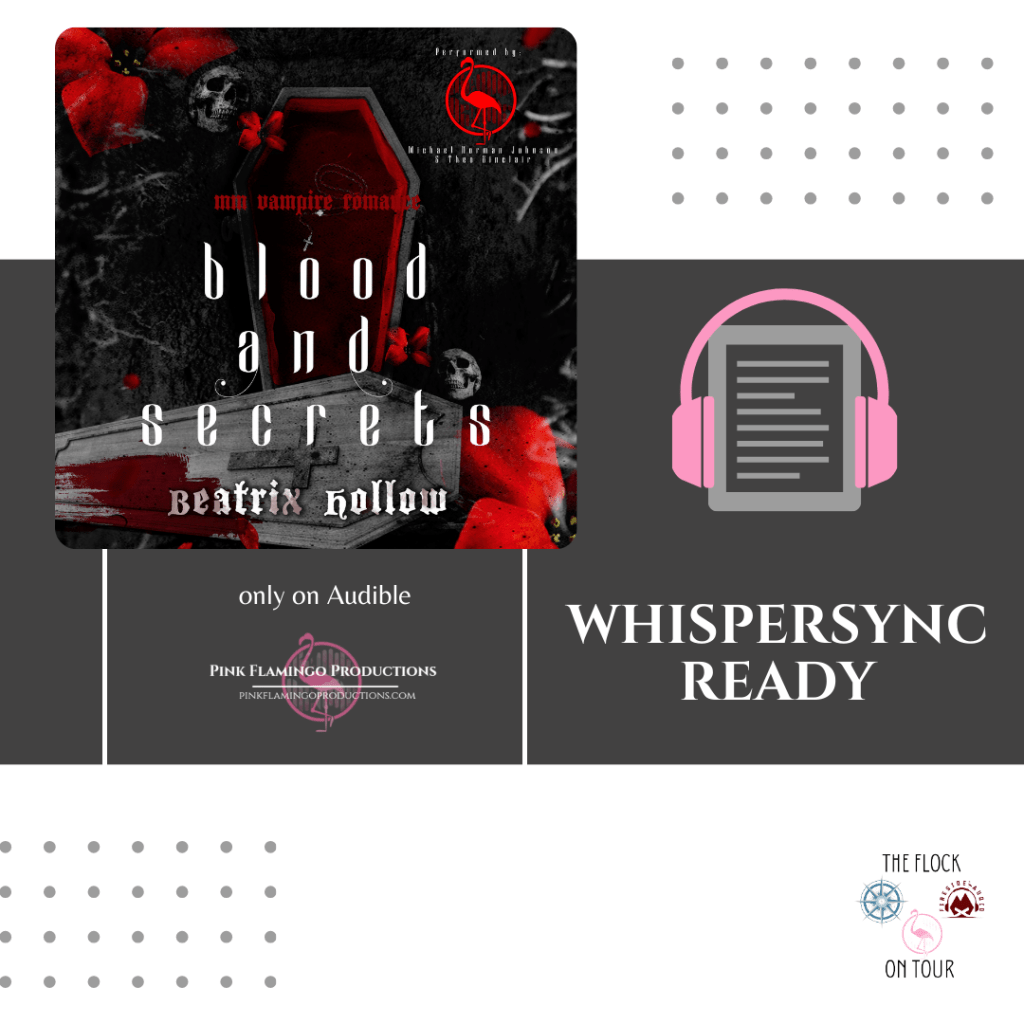 #NewRelease #NowLive #WhispersyncBlitz #PinkFlamingoProductions #TheFlockonTour #BloodandSecretsAudioTour #BloodandSecretsNameAudioTour #BeatrixHollow #MichaelNormanJohnson #TheoSinclair #MMRomance #VampireRomance #ParanormalRomance