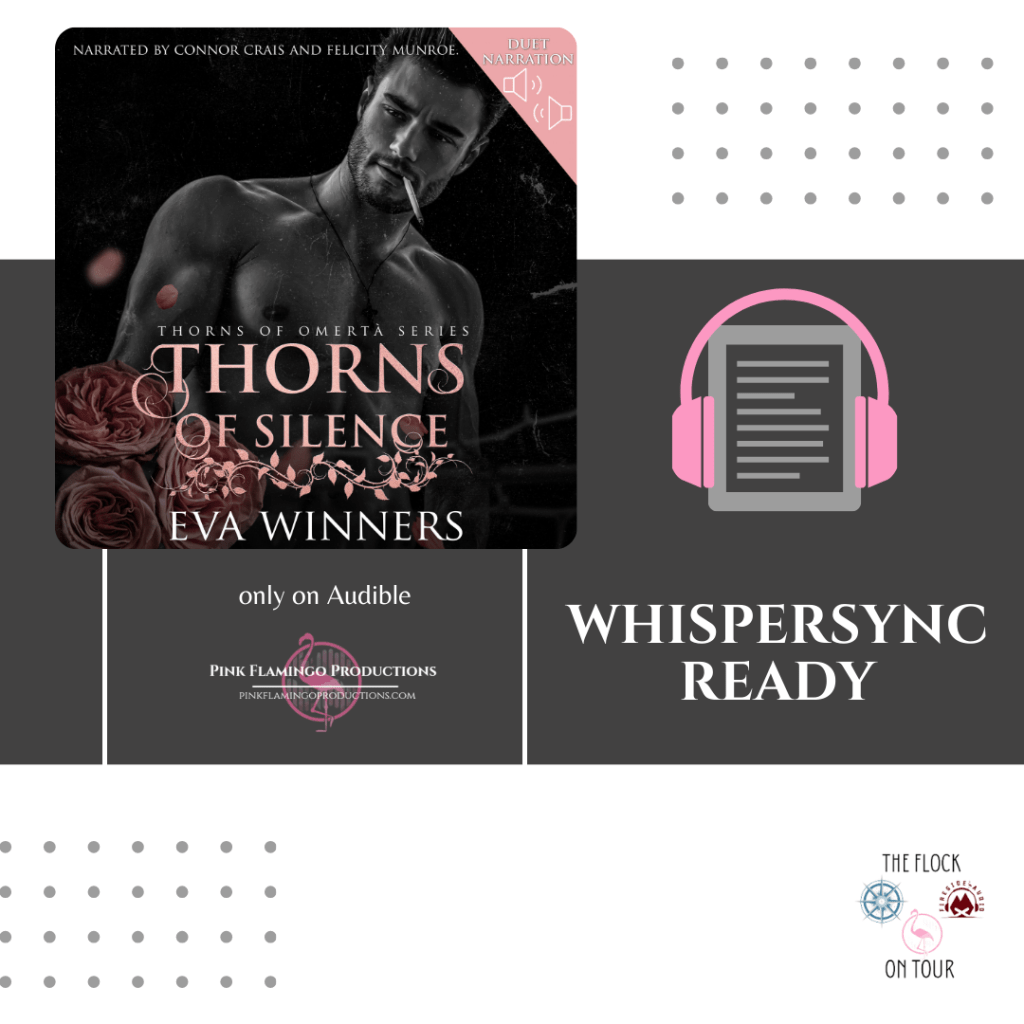 #NewRelease #NowLive #WhispersyncBlitz #PinkFlamingoProductions #TheFlockonTour #ThornsofSilenceAudioTour #EvaWinners #ConnorCrais #FelicityMunroe #RomanticSuspense #MafiaRomance