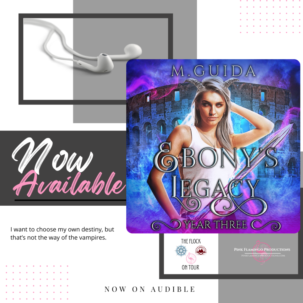 #NowLive #NewRelease #ReleaseBlitz #PinkFlamingoProductions #TheFlockonTour #EbonysLegacyYearThreeAudioTour #MGuida #BridgetBordeaux #ParanormalRomance #YARomance #UniversityRomance #MagicalRealism #ForbiddenRomance