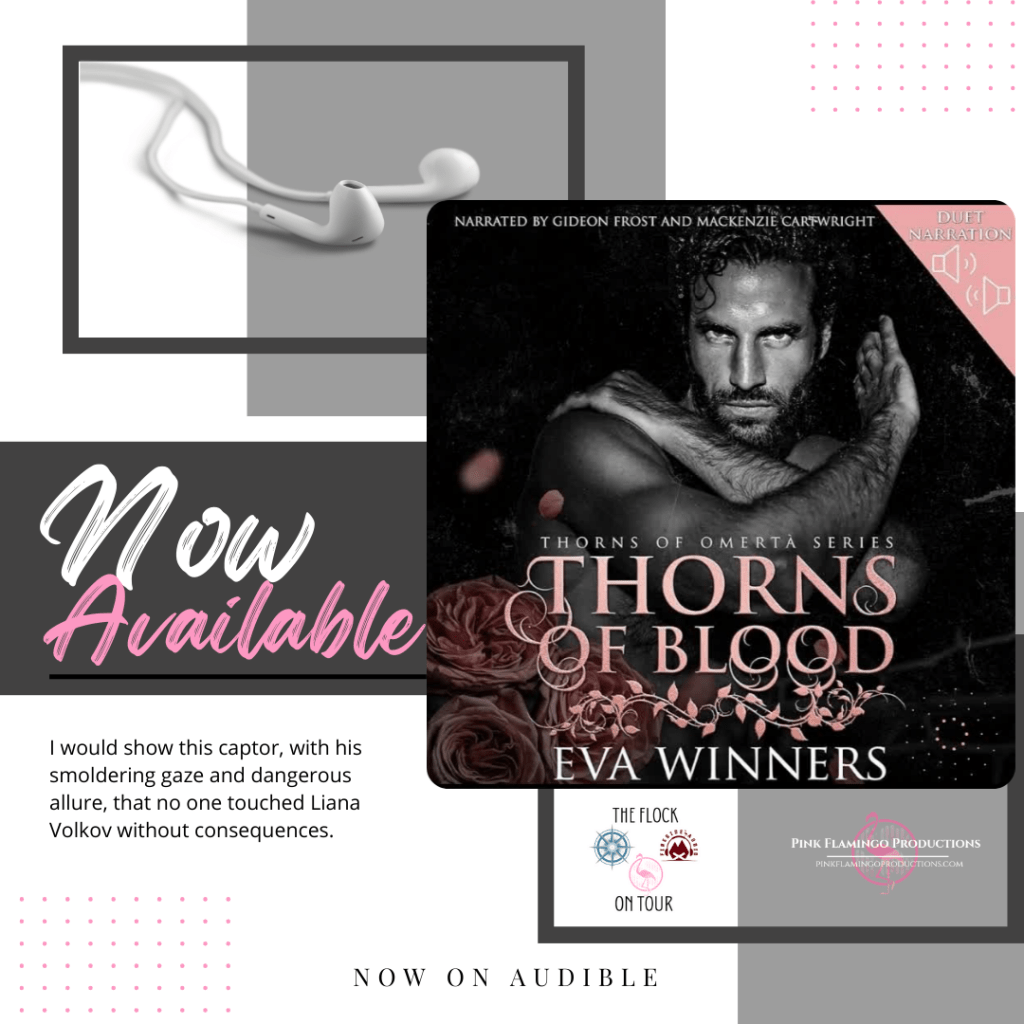 #NowLive #NewRelease #ReleaseBlitz #PinkFlamingoProductions #TheFlockonTour #ThornsofBloodAudioTour #EvaWinners #MackenzieCartwright #GideonFrost #DarkRomance #MafiaRomance #RomanticSuspense