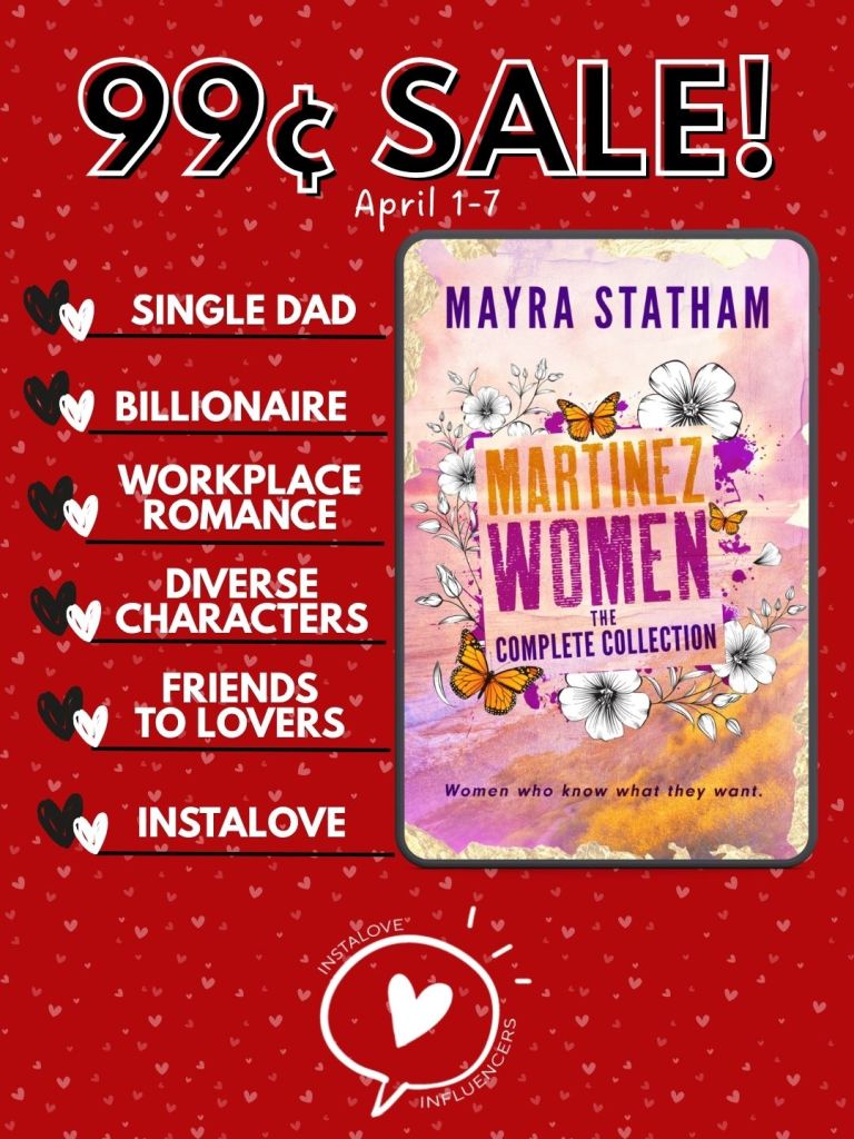 Romance author, Mayra Statham, brings you the complete collection of her Martinez Women. Where you’ll not only be able to dive into five books filled with swoon worthy, insta-love romance but read Mama Martinez’s story! Exclusively available in this box set only.