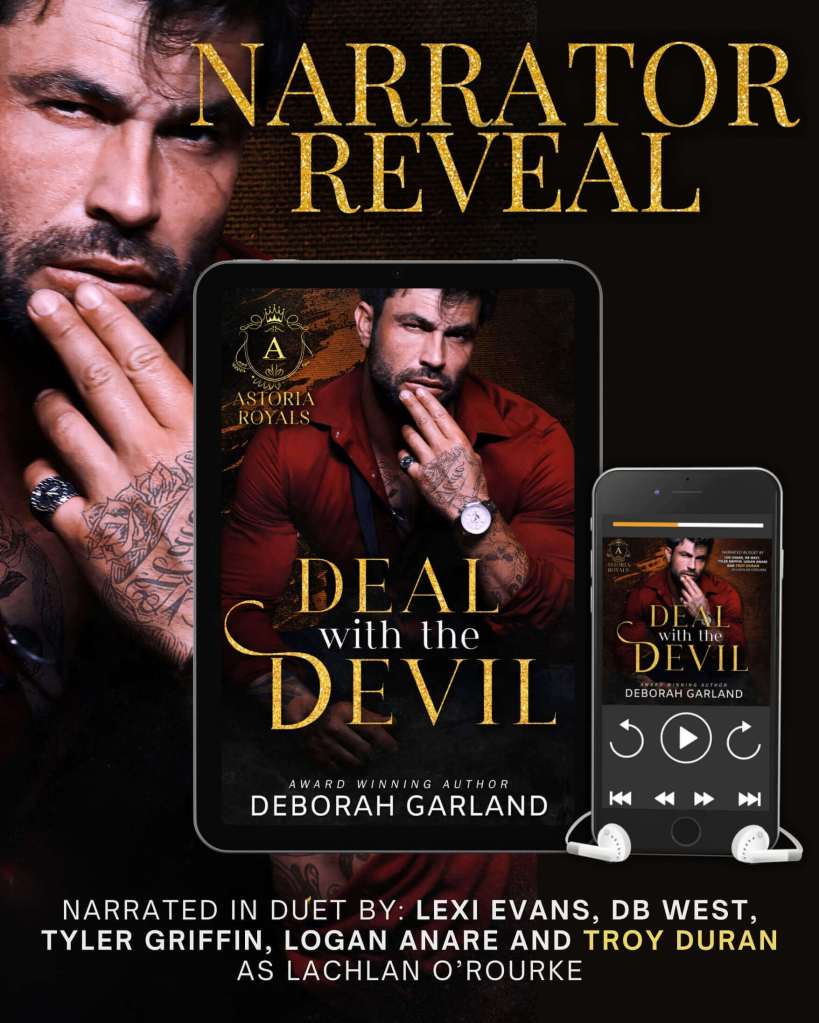 ✨NARRATOR REVEAL: DEAL WITH THE DEVIL by @deborahgarlandauthor is coming to audio March 5, narrated in Duet by Lexi Evans, DB West, Tyler Griffin, Logan Anare,and Troy Duran as Lachlan O’Rourke!