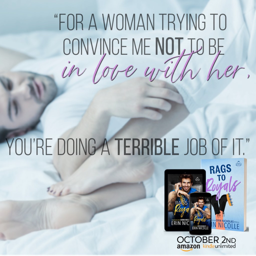 Rags to Royals is a modern royal romance with a feisty single mom, a golden retriever prince who falls first and hard, and lots of delicious dirty talk and spice on the page. It is the third book in the Royals Gone Rogue series, but can be read as a stand-alone.